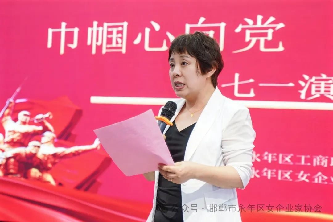 為慶祝中國共產(chǎn)黨成立103周年,回顧黨的光輝歷程,增強(qiáng)女企業(yè)家的榮譽感和使命感,為女企業(yè)家提供展示風(fēng)采、交流學(xué)習(xí)的平臺,凝聚女性力量,推動全區(qū)女企業(yè)家在永年經(jīng)濟(jì)社會發(fā)展中發(fā)揮更大的作用,6月29日下午,永年區(qū)女企業(yè)家協(xié)會聯(lián)合永年區(qū)工商聯(lián)、永年區(qū)婦聯(lián)舉辦“巾幗心向黨 筑夢新時代”“慶七一”演講比賽。